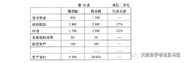38.某公司2019年度资产负债表部分内容与所属行业的比重数据如题38表所示。