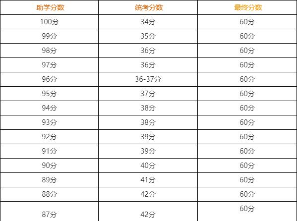 考生的自考最终成绩计算公式=助学成绩×40%+统考笔试成绩×60%。